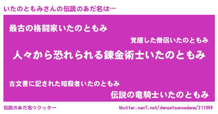 | ヒーロー風カッコイイあだ名 | 『友情の使者いたのともみ』 |
