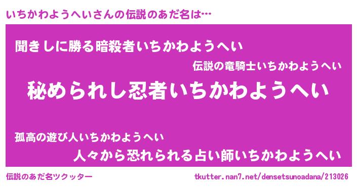 | 意味不明あだ名 | 『いちかわようへいフォーエバー』 |
