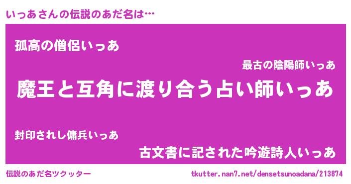 | 女子向けラノベタイトル風あだ名 | 『闇のいっあ』『いっあ夫妻のなれそめ』 |
