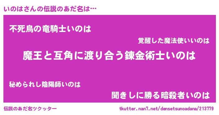 | 女子向けラノベタイトル風あだ名 | 『いのは恋絵巻』『いのは姫と円卓の騎士』 |