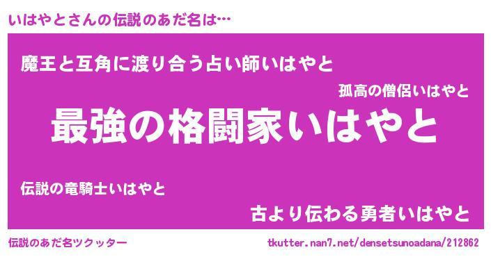 | 男性向けラノベタイトル風あだ名 | 『うちのいはやとが世界を掌握している!』 |