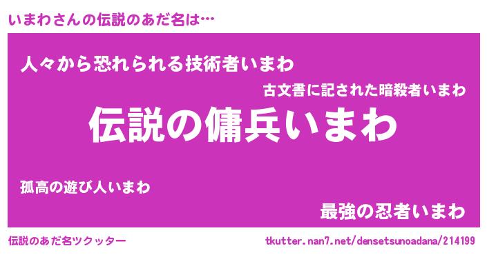 | ヒーロー風カッコイイあだ名 | 『スーパーイマワ』『天空の使者いまわ』 |