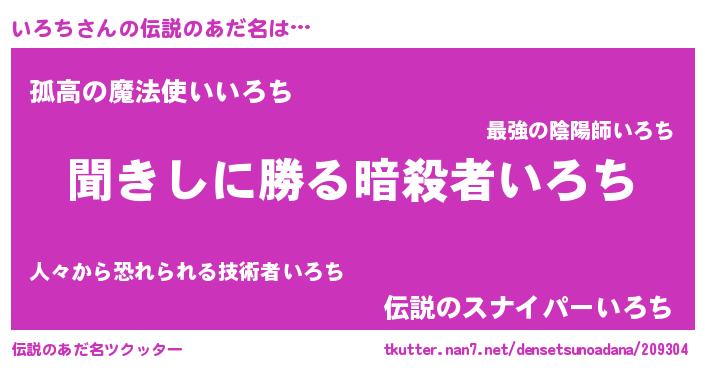 | ヘコむあだ名 | 『いろち(笑)』『いろを』『いろもー』 |