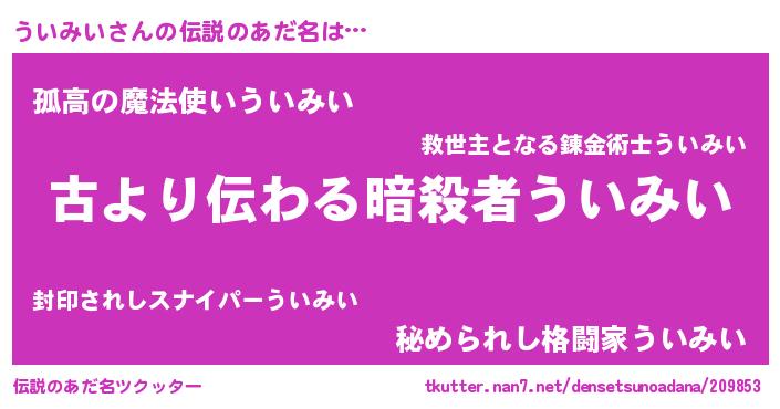 | 意味不明あだ名 | 『永久保存ういみい』『自称ういみい』 |
