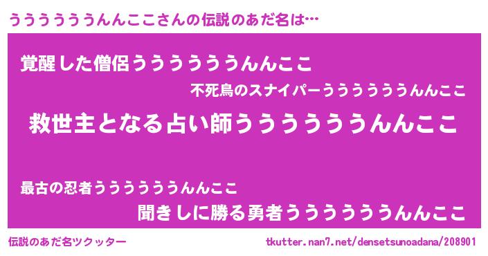 | ヒーロー風カッコイイあだ名 | 『天空の使者ううううううんんここ』 |
