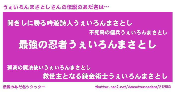 | ヒーロー風カッコイイあだ名 | 『ウルトラうぇいろんまさとしマン』 |