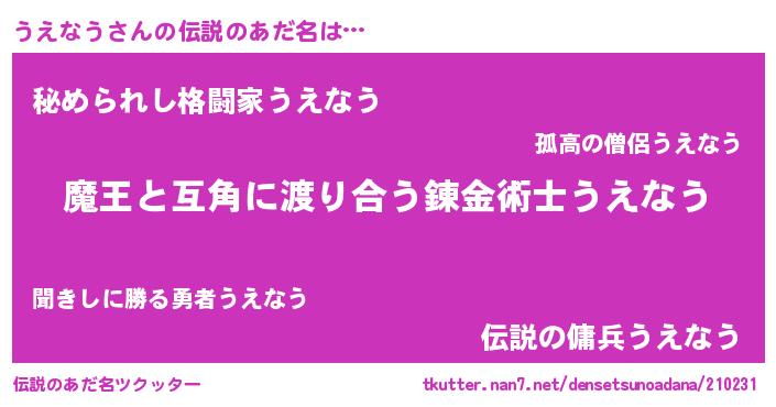 | ヒーロー風カッコイイあだ名 | 『愛の使者うえなう』『仮面ウエダー』 |