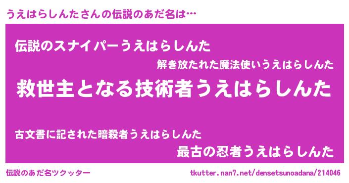 | ヒーロー風カッコイイあだ名 | 『慈愛の使者うえはらしんた』 |