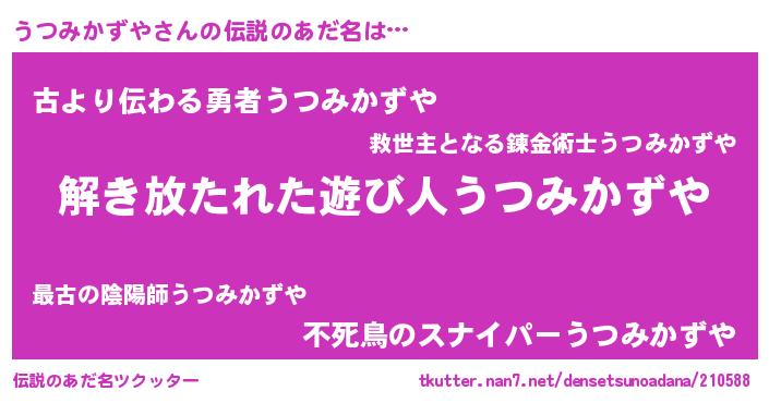 | 肩書あだ名 | 『うつみかずや総統』『うつみかずや団長』 |