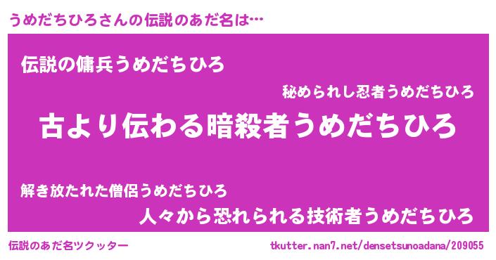 | 意味不明あだ名 | 『永久保存うめだちひろ』 |