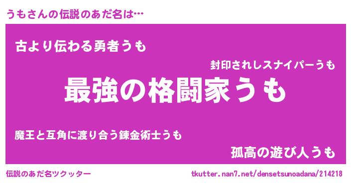 | ヒーロー風カッコイイあだ名 | 『ウルトラうもマン』『サイバー戦士ウモ』 |