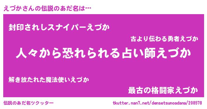 | ヒーロー風カッコイイあだ名 | 『仮面エヅダー』『正義の使者えづか』 |