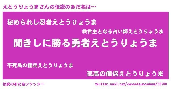 | 可愛いあだ名 | 『えとうちぇる』『えとうりょうまママ』 |