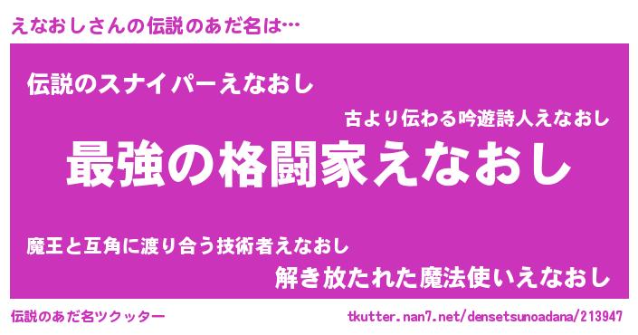 | ファンタジー風あだ名 | 『エターナルエナオシー』『エナフェル』 |