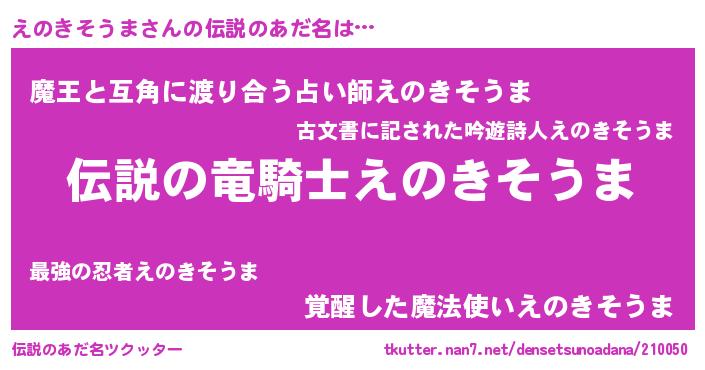| 胡散臭い通販商品みたいなあだ名 | 『ガンによく効く高麗人参…その名も「えのきそうま」』 |
