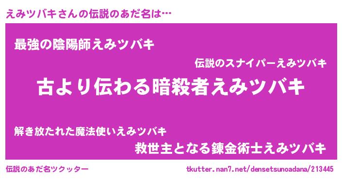 | 男性向けラノベタイトル風あだ名 | 『えみツバキという概念が存在しない退屈な世界 』 |