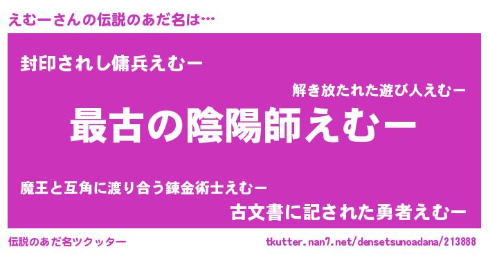 | ヒーロー風カッコイイあだ名 | 『ウルトラえむーマン』『スーパーエムー』 |