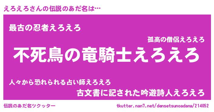 | ヒーロー風カッコイイあだ名 | 『ウルトラ戦士エロエロ』『仮面エロダー』 |