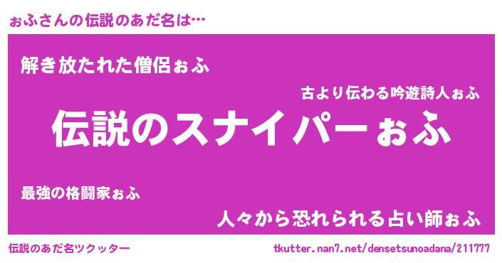 | ファンタジー風あだ名 | 『カークォフラー』『ォフフェル』 |