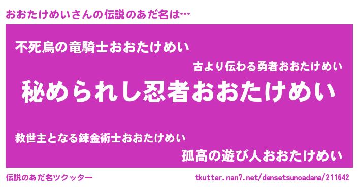 | 意味不明あだ名 | 『おおたけめいフォーエバー』 |