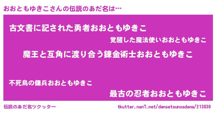 | 男性向けラノベタイトル風あだ名 | 『おおともゆきこに滅ぼされるだけの簡単なお仕事です』 |