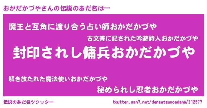 | 意味不明あだ名 | 『自称おかだかづや』 |