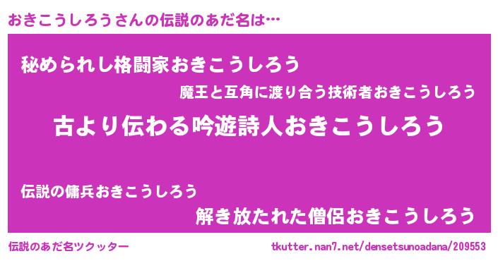 | 意味不明あだ名 | 『自称おきこうしろう』 |