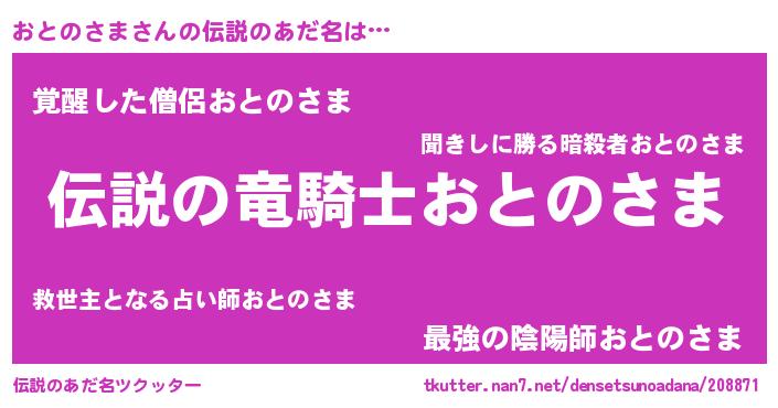 | ヒーロー風カッコイイあだ名 | 『スーパーオトノサマ』『炎刃騎士オト』 |