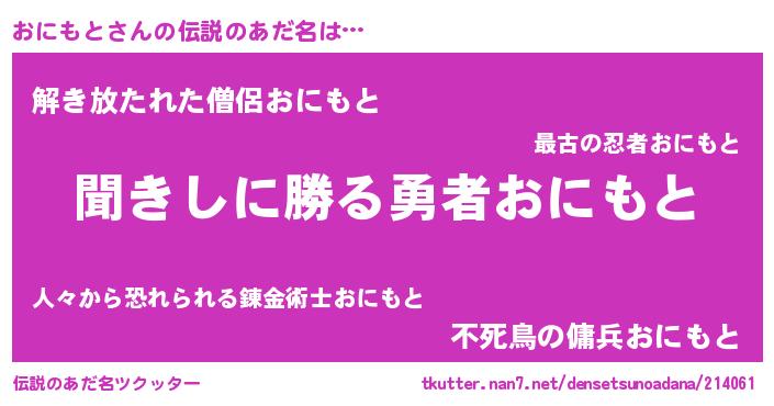 | 意味不明あだ名 | 『自称おにもと』『永久保存おにもと』 |