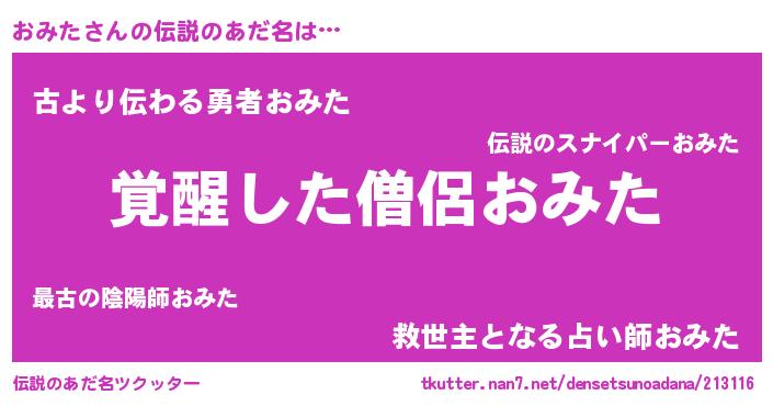 | 意味不明あだ名 | 『とにかく怪しいおみた』 |