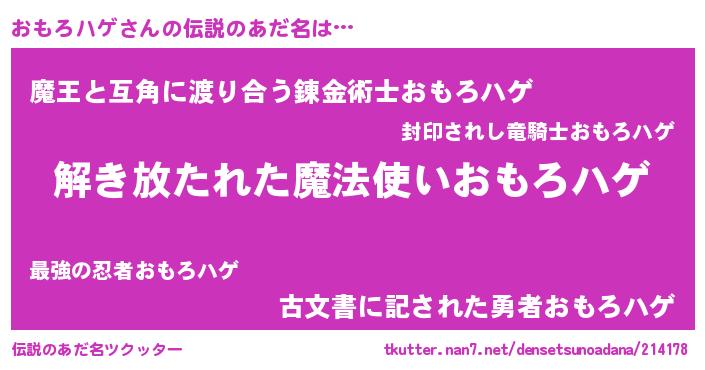| 男性向けラノベタイトル風あだ名 | 『転生したらおもろハゲだった件』 |