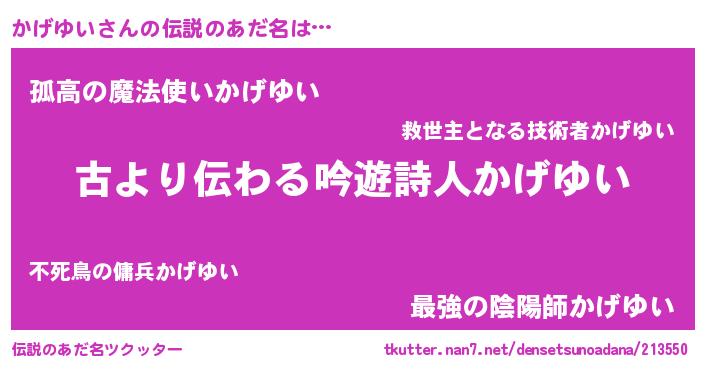 | ファンタジー風あだ名 | 『カークカゲラー』『カゲディッシュ』 |