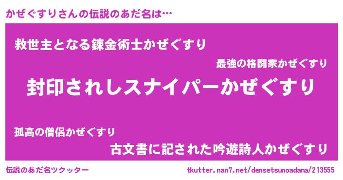 | ヘコむあだ名 | 『かぜっふぃ~』『かぜぐすり(震え声)』 |