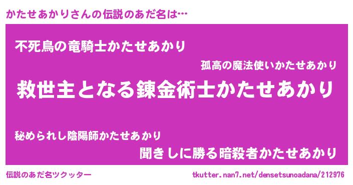 | 男性向けラノベタイトル風あだ名 | 『ノーゲーム・ノーカタセアカリ』 |