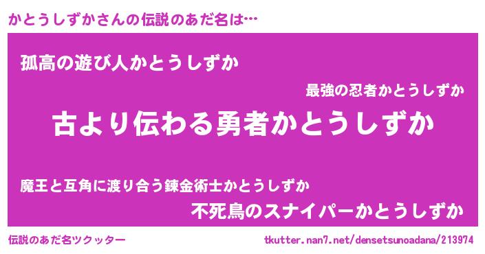 | ヒーロー風カッコイイあだ名 | 『仮面カトダー』『ネオカトウシズカ』 |