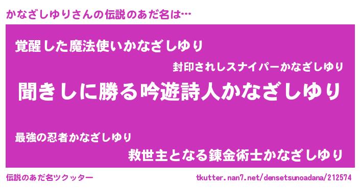 | 男性向けラノベタイトル風あだ名 | 『かなざしゆりという概念が存在しない退屈な世界 』 |