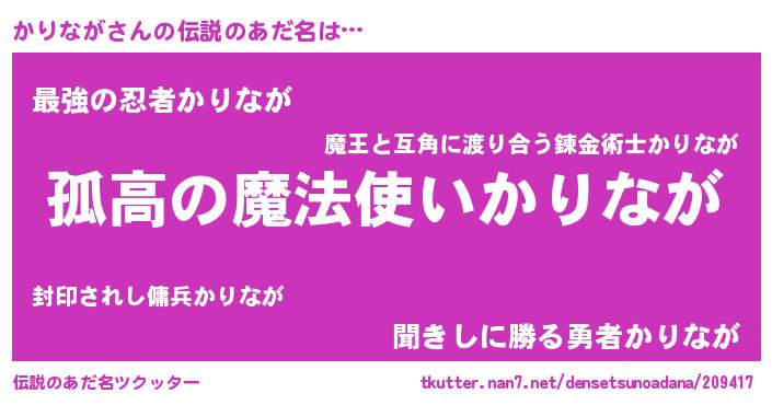 | 意味不明あだ名 | 『とにかく怪しいかりなが』 |