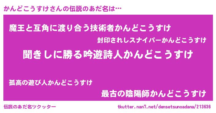 | 意味不明あだ名 | 『永久保存かんどこうすけ』 |