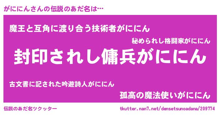 | 胡散臭い通販商品みたいなあだ名 | 『億万長者になれる水晶球…その名も「がににん」』 |