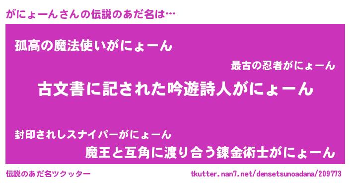 | 男性向けラノベタイトル風あだ名 | 『誰もが恐れるあのがにょーんが、ぼくの専属メイドになるようです。』 |