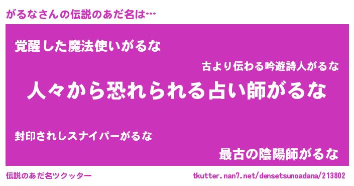 | ヒーロー風カッコイイあだ名 | 『友情の使者がるな』『幻影騎士ガル』 |