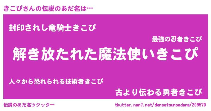 | 意味不明あだ名 | 『とにかく怪しいきこぴ』『自称きこぴ』 |