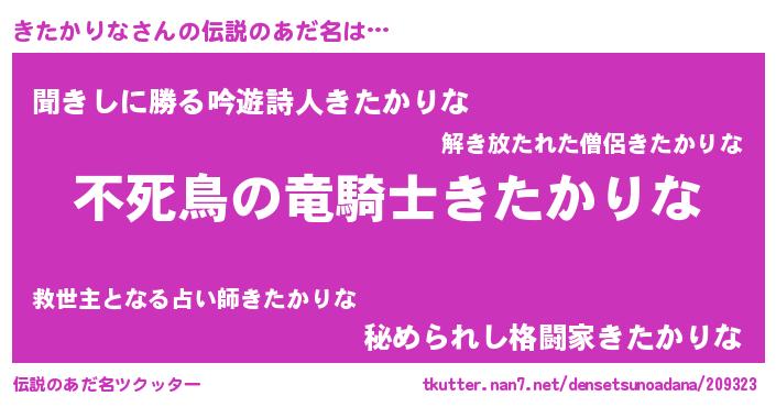 | 女子向けラノベタイトル風あだ名 | 『闇のきたかりな』 |