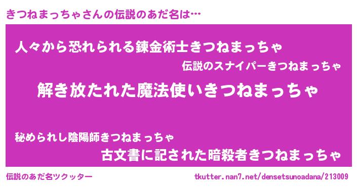 | ヒーロー風カッコイイあだ名 | 『サイバー戦士キツネマッチャ』 |