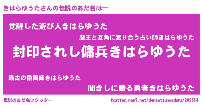 | 男性向けラノベタイトル風あだ名 | 『キハラユウタアートオンライン』 |