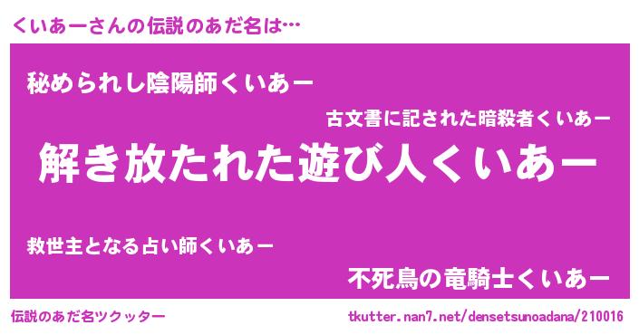 | 欧米人風あだ名 | 『アンジェラ・くいあー』 |