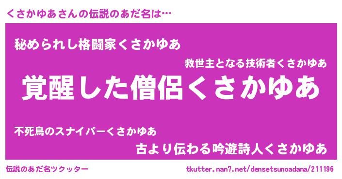| 意味不明あだ名 | 『とにかく怪しいくさかゆあ』 |