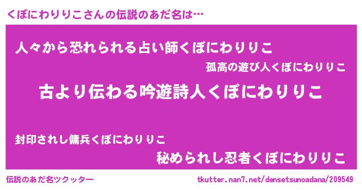 | ヘコむあだ名 | 『くぼにわりりこ(小並感)』『酢こんぶ』 |