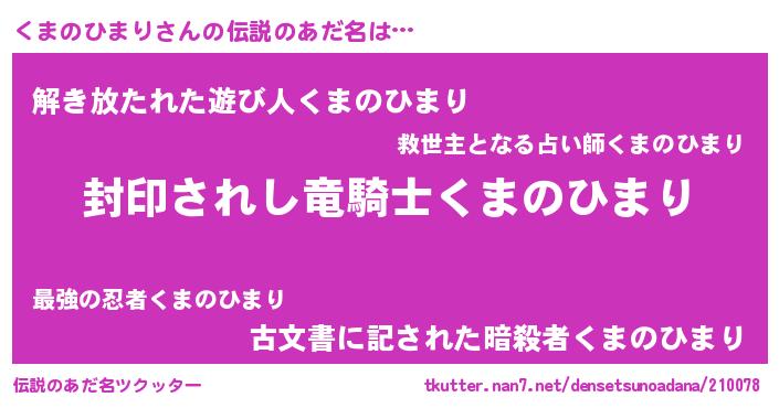 | 胡散臭い通販商品みたいなあだ名 | 『あなたにだけ特別に提供する100年もののヴィンテージワイン…その名も「くまのひまり」』 |