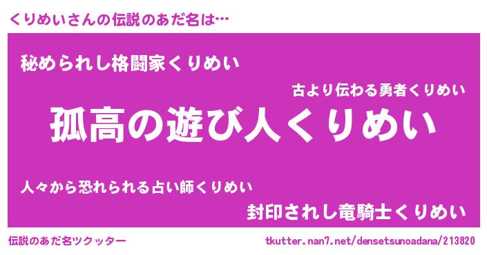 | 胡散臭い通販商品みたいなあだ名 | 『信頼と実績のペンダント…その名も「くりめい」』 |